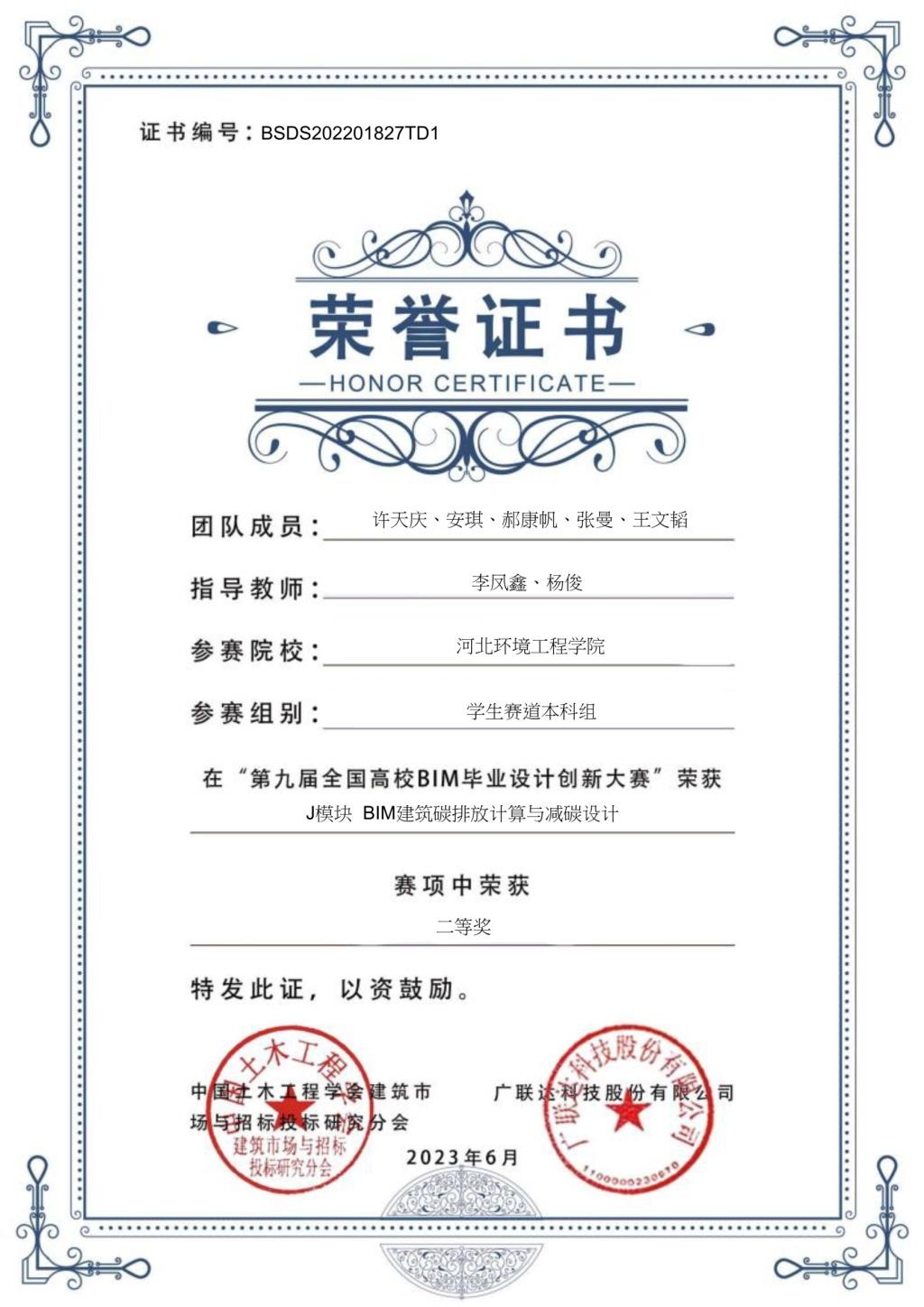 利用广联达BIM土建计量平台GTJ2021和广联达BIM安装算量GQI2021对赵州庆阳书院“5#宿舍楼”进行模拟施工建模,然后将BIM模型导入广联达云计价平台GCCP6.0,自动生成工程量清单,并计算各种材料的消耗量。然后,运用东禾建筑碳排放计算分析软件V2.0,通过添加建筑材料的碳排放因子,计算“5#宿舍楼”在建材生产阶段、运输阶段以及建造阶段的碳排放量。最后,从全生命周期角度出发,通过调整施工方案和更换建筑节能材料,进行减碳优化分析,提出具体低碳策略并验证实施效果。本设计成果在第九届全国高校BIM毕业设计创新大赛中荣获二等奖。