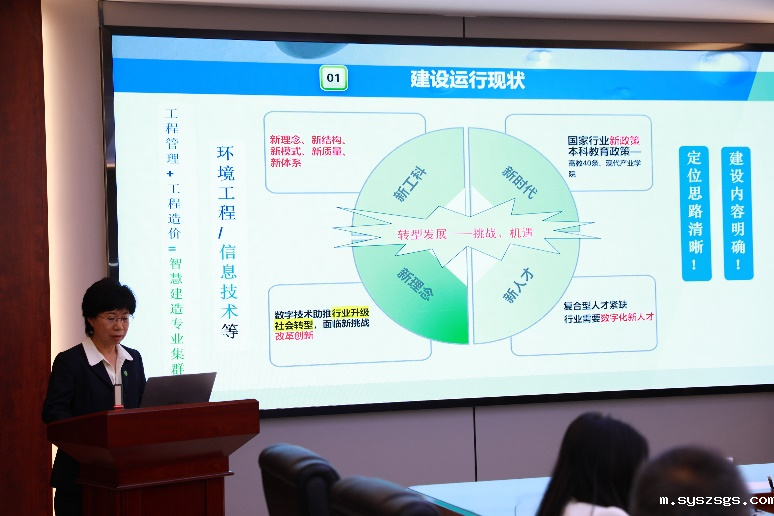 会上,校企双方介绍现阶段产业学院发展情况,产业学院院长、经济与管理系管理科学与工程教研室主任王丽芸汇报现有合作成果,广联达公司方案咨询专家朱莉经理汇报后续合作方向。